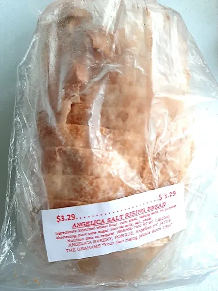 The Salt Rising Bread has been made in Angelica NY and is well-known throughout the local stores and restaurants, and has been shipped throughout the United States.