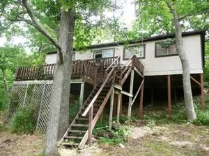 You just have to see this "Cabin in the Trees", Deeply shaded Ranch set among trees on 2 water front lots, Deck 2 levels for extra entertainment options w/ stairs to level ground and the water, 3 bedrooms, kitchen completely furnished As is living room, even has a bar for adult entertainment, one balcony 8x20, Steps down onto large balcony 14x20