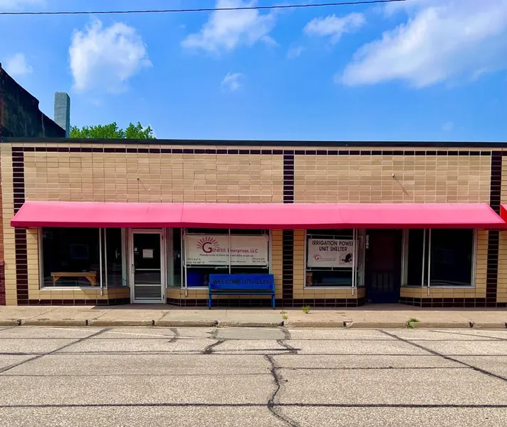 Commercial Building available in Allen, Nebraska, just outside of Sioux City, IA. 3645 square feet of warehouse, office, storage, and bathroom. Loading dock in the back. This building could be split in half with a separate street entrance. Comes with a full HVAV unit. Rooftop Solar that is 6kw - 20 panels with a string inverter. 8000 kwh per year. The building uses an average of 35-40 kwh a day. Roughly $100 per month in electric cost, of which $45 of it is a set cost. This building also comes with an additional 24' x 36' garage in the back, that can hold two cars or is great for extra storage/work area. The garage is fully insulated with a furnace. Hookups are there for an additional bathroom to be added if needed. This building would be a great building for a warehouse, office space, storage, manufacturing, etc. Located just outside of Sioux City, makes it a lot cheaper to own your own building than pay the high cost of rent in the cities. Currently, this building is being used for manufacturing frame tents, canopies, walkway & entry covers, smoking shelters, tarps, spray booths, & related fabric structures. However, they will be outsourcing some of their manufacturing and utilizing more automation.