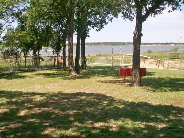 LAKE NOCONA Really nice waterfront home built in 2003. 2 bedroom, 2 bath, open floor plan, laundry room, screened in porch overlooking the lake, well landscaped yard with big oak trees, covered boat dock, 2 storage bldgs, large carport and a travel trailer that is great for company.