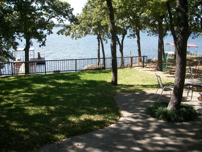 LAKE HOUSE - 2 bedroom, 1 bath, central heat & air, wonderful fenced yard with a sprinkler system & big oak trees, outdoor grill & fire pit, storage building, covered boat dock with a slide and a great view.