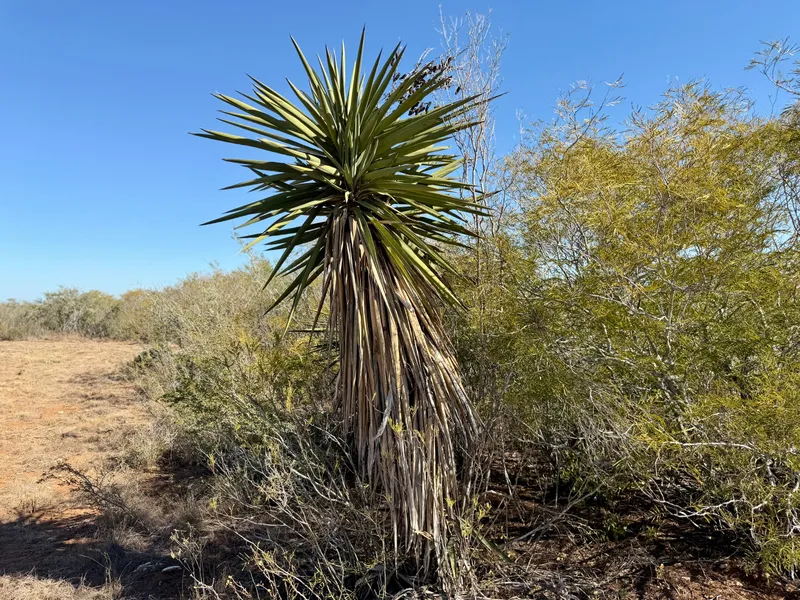 The land is covered in the typical thick brush of South Texas, featuring mesquite trees, cacti, and other native plants. Local wildlife includes whitetail deer, feral hogs, turkeys, quail, and doves, providing excellent hunting opportunities.