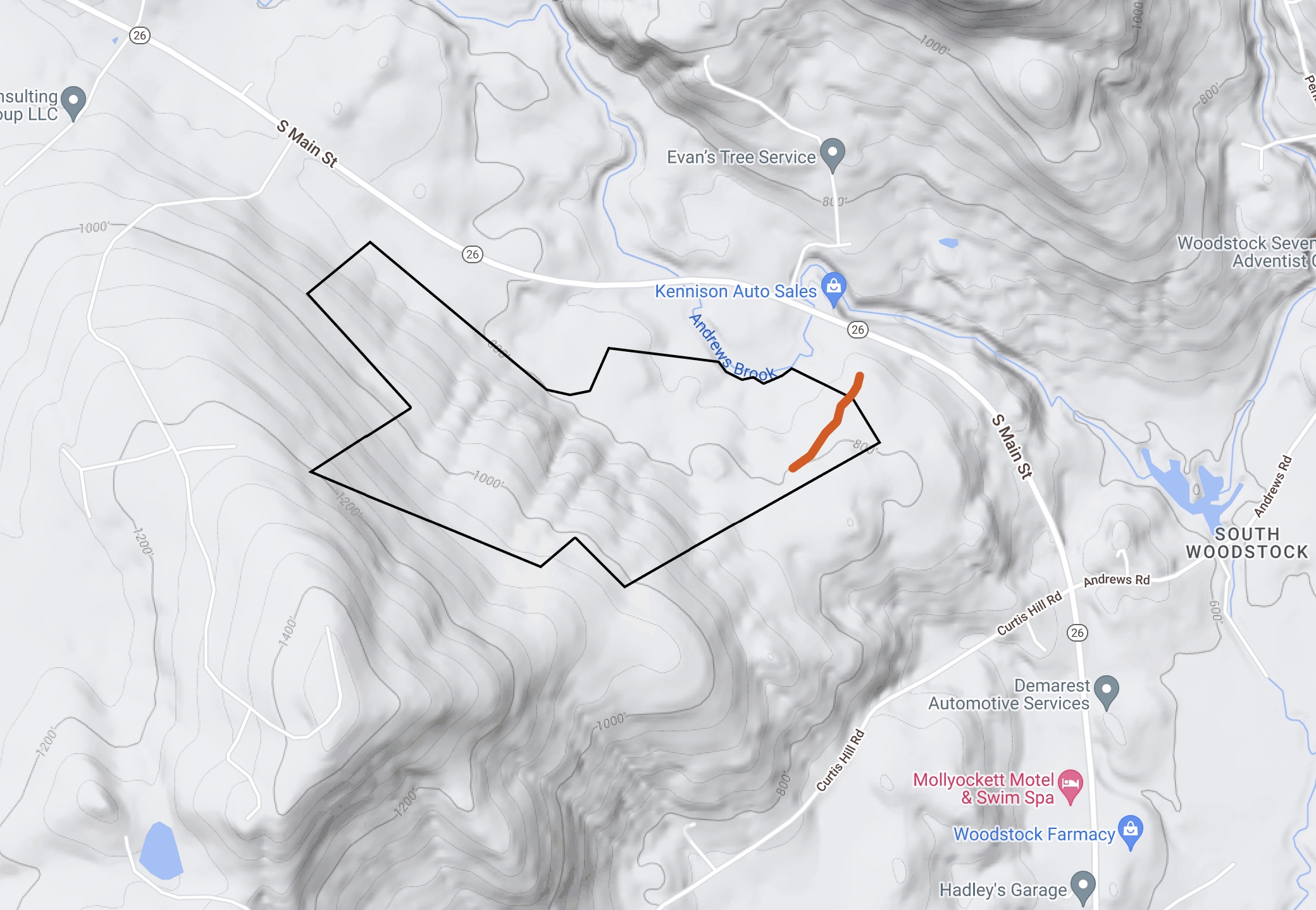 The land is already subdivided into four separate lots, each approximately 40 acres and there are two established right-of-ways for access directly from Route 26.