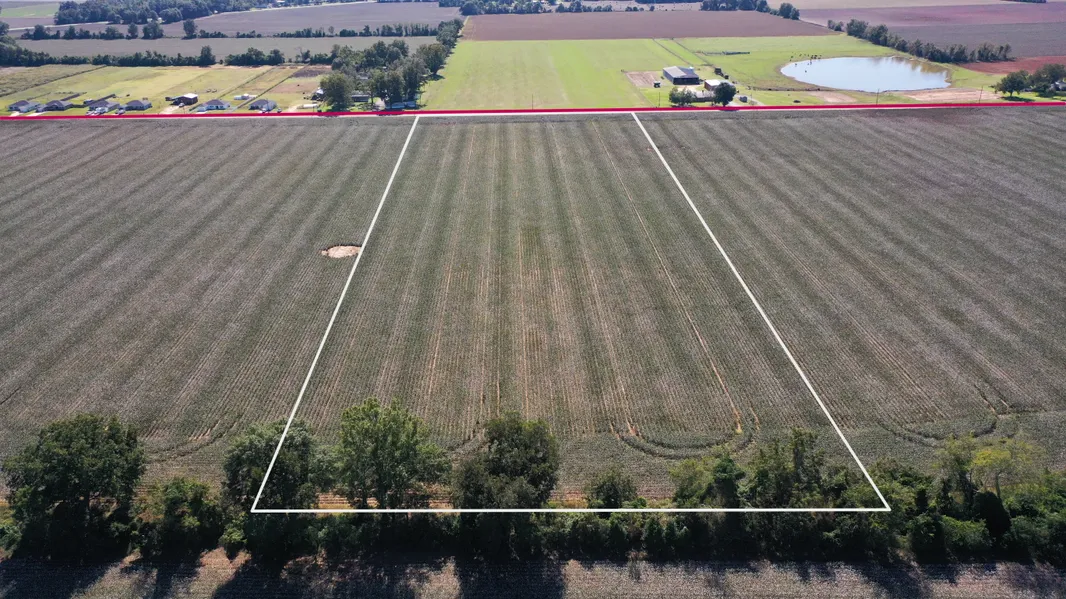 The paved frontage and flat topography make access simple, whether you're planning fencing, equipment access, or building infrastructure. The surrounding farmland adds a peaceful backdrop and reinforces the practical appeal of this location.