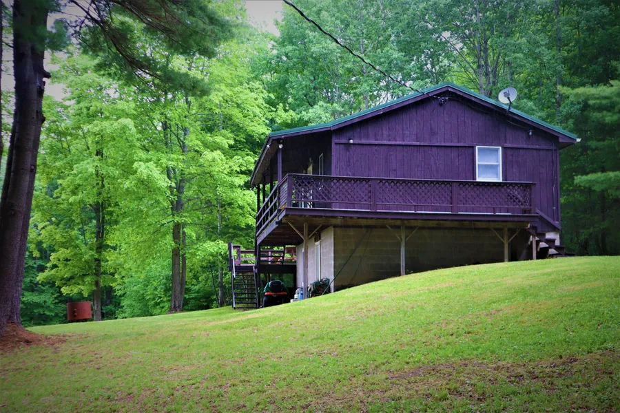 Enjoy a million dollar view right from the cabin porch and lower deck looking over one of two ponds in this tucked away escape. Rarely do you find a property that has privacy, ponds, mountain views, great deer hunting and that peaceful easy feeling all in one special place. The upper pond is overlooked from a 638 square foot cabin, with an additional 638 lower level with a 9’ ceiling sporting a 29 foot long covered porch, and 16’ x 19’ lower deck large enough for whole family retreats and barbeque summers. Two bedrooms are off board to the open concept kitchen and living room with a fireplace. One is used as a primary bedroom, while the second has bunk beds for more guests or the kiddos. There are three sources of heat. Propane, electric or the bone warming heat of a wood stove after a days hike or hunt. The yard is expansive and has been diligently maintained for a cabin campus that has a park like feel. Deer and turkey abound in the surrounding hills, and total access is afforded by a trail network that spans all corners of the property. A lower pond is additionally as nice as the upper, and would be a perfect location for a pavilion or expanding to a second cabin for other family members or friends should you have a need for more lodging. A second road provides access to the lower pond as well. Springs are healthy here and several are on the property with a very strong outflow. The owner’s deer camp crew has enjoyed many successful seasons here, no doubt as evidenced by a pine tree buck pole ready for the fall, and sharing pictures of a whopper class buck picture taken a few years ago. The bonus to this property is that the cabin comes fully furnished ready to move into and start enjoying the seasons right away. Owned since 1973, this property has been lovingly cared for, groomed and maintained for four season recreations, even having a portion of the snowmobile trail clipping a corner of the property for sledding enthusiasts. Hop on the trail and ride. A select cut (17”) timber harvest was completed 6 years ago, and the understory has recovered beautifully and the deer have plowed into the property in numbers with early succession growth rejuvenating under the canopy now that light can reach the forest floor. Don’t let this special property pass you by, it is awesome and relaxing at the same time. Priced well to sell!