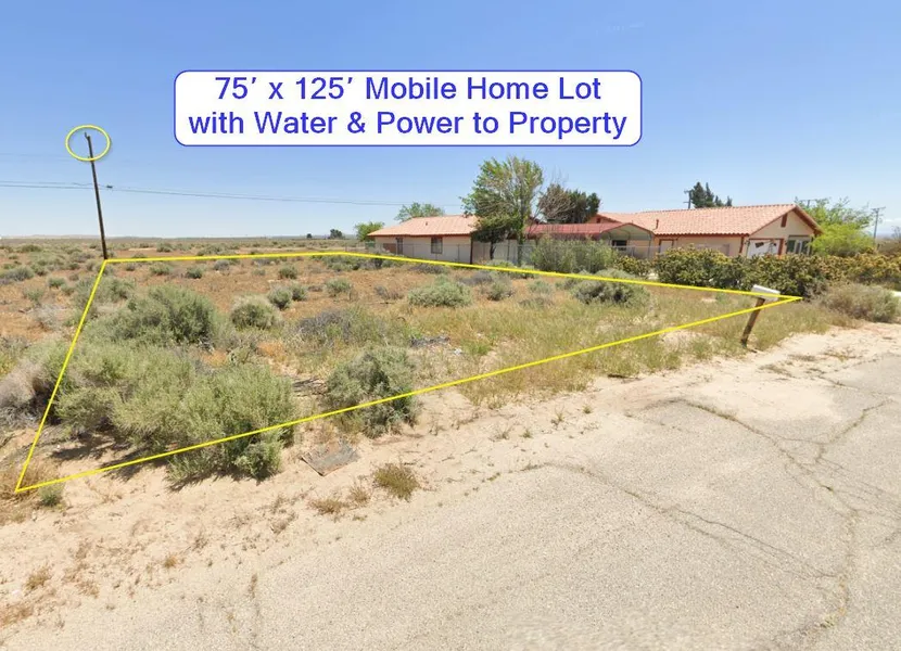 Large 0.22-acre, 75 x 125 lot with utilities to place a manufactured home on or build your dream home in North Edwards, California. This property is nestled on Margo St just 43 miles from Lancaster. There are gorgeous houses and friendly people in the area that could be your potential neighbors. The community has its own park, market, a school and some churches. The area boasts its location away from the noise of the city and with that, a majestic stretch of land in Kern County! The lowest-priced comparable lots on Zillow are listed for $8,000. This lot has water, power, cable, phone and internet service to the property line. Get this property today and hold for investment, place a manufactured home on it, or build your dream home!