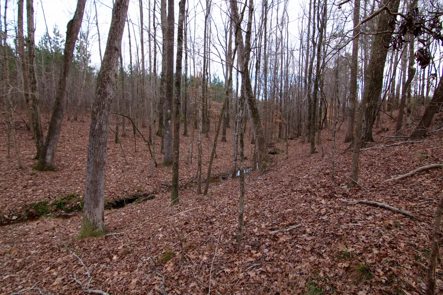 Approx 5 acres of 10yr natural growth pines towards the eastern (roadside) of the property with the remaining 8 acres consisting of beautiful large hardwoods overlooking a watershed creek bed running through a low lying bottom area. At the time of the listing the creek was running at a solid flow with no rain for several days. Existing trails throughout the majority of the property help ease access to each corner. Recent survey left pink tape along the entire border of the property.