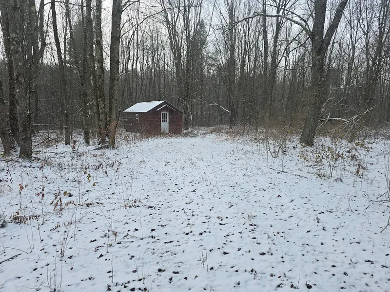 Affordable off-grid, rustic cabin on a nice-sized lot, provides plenty of room for hunting and outdoor recreation opportunities, remote but still close to amenities. Located on a private gravel road, the cabin is approximately 12' x 28'. The cabin is 3/4 finished with tongue-and-groove pine walls and ceiling. The rear of the cabin is not finished and has a double door for storing an ATV or a lawn mower. The area around the cabin offers plenty of parking for vehicles, additional campers, or ATVs. The cabin can sleep 2-4 adults if desired, and has an Asphalt shingle roof. It is primarily a wooded parcel, offering ideal hunting for whitetail and wild turkey. The presence of the stream and the beaver dam also provides water for the wildlife. Noted during a recent visit, a lot of small game and deer tracks were near the water source. Nearby NYS Lands also offer deer, turkey, and small game hunting. It is just a short drive to the Chenango and Unadilla Rivers, multiple lakes for fishing, Ambler State Forest, and the NYS snowmobile trail system throughout the CNY region.