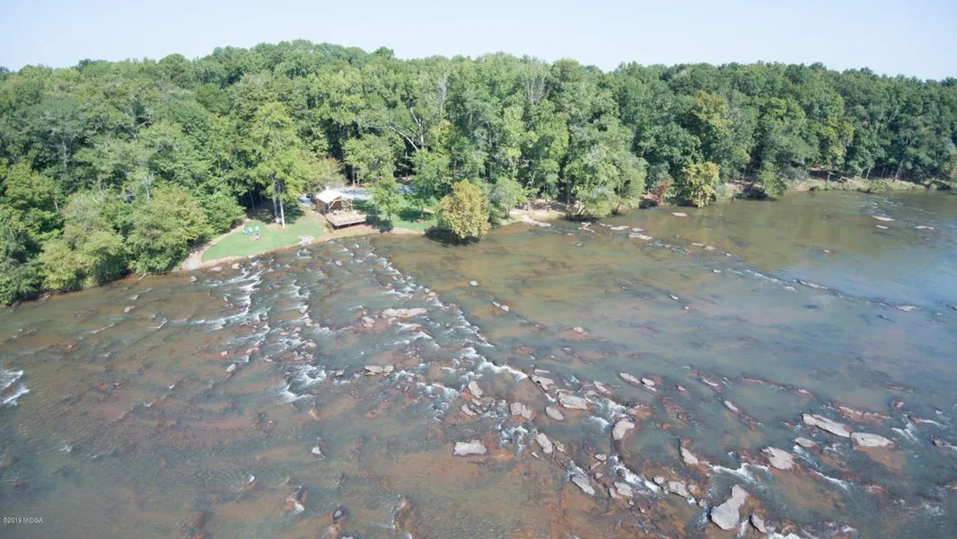 The premier Ocmulgee River Front property ever offered. 32 meticulous acres with almost 2000 ft of river front encompassing over 17 acres of continuous shoals almost 700 feet across at its widest. The roar of the whitewater is unmatched. Perched at the perfect location to take it all in, is a furnished pavilion with an elevated sundeck hanging over the falls, covered sitting area with fireplace, big screen TV, sound system, internet, small indoor kitchen, bathroom, outside shower, covered grilling area, hammock and fire pit. Well, septic, and storage bldg. Main building site is cleared with stunning views of the shoals and green pasture behind. Gated entrance, graveled roads, underground utilities, boat ramp. No expense was sparred. Ready to build and or wedding venue. Can not be divided