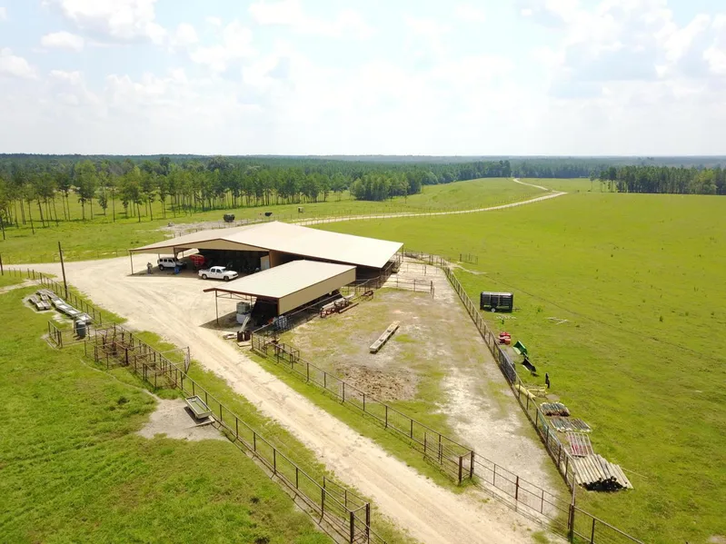 One of the most pristine pasture/cattle farms in the area! This property consists of approx 361 acres of improved pasture with Tiftin 9 & Bermuda grass, 8 different pasture sections with pipe fencing, 8 acres for bull pens, several shops/hay barns. Community water & 2 water wells. Excellent hunting, too!!