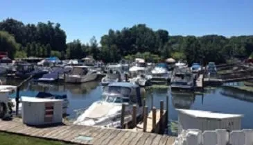 Floating boat dock with dock box. Marina pool and restrooms.