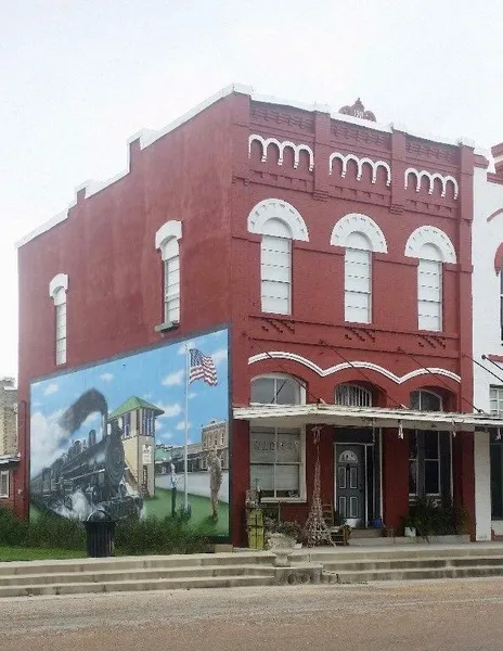 *East wall of the property is the canvas to a mural presented by the Flatonia Chamber of Commerce with the theme of Flatonia History