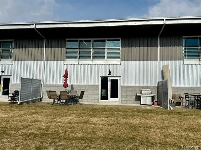 M1 Concourse Private Garage Community Unit 161. One of only eight units in the coveted "patio building" with your own individual trackside patio/outdoor space. 1190sf of garage floor space plus full mezzanine with elevated views of the track and hairpin turn. Half bath on garage level and full bath on the mezzanine level. Kitchen with stainless appliances and concrete counters. Stylish finishes with stainless wall panels. Make this your home away from home surrounded by likeminded auto enthusiasts. Join the M1 Private Garage Community and get in on the fun with parties, music festivals, cruise nights and easy access to many fun events. Enjoy the privacy of your own space or make new friends and join the fun only steps away. Can also be used for office or work space. Association dues $744.66 quarterly. Overhead door is 16' high 18' wide. Buyer to verify sq. ft. and all information.