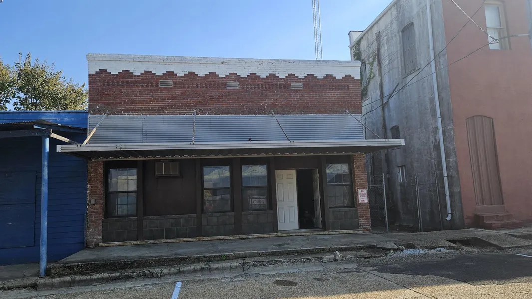 Commercial building with lots of potential. Has double door on the front with a single door at the rear of the building. Building has lots of storage space and a work bench. Double panel windows in the front of the building. Roof does leak. Mildew warning. Roof need repaired or replaced. Some new sheetrock and some unfinished spaces.