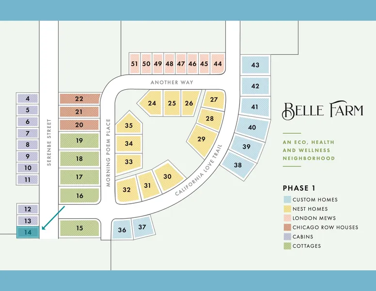 Lot 14 at Belle Farm. Lot comes with a floor plan consisting of 2-3 Beds, 2.5 - 3.5 Baths, approx. 1,300 - 1,700 SQ FT. Who says you cannot live beautifully in a smaller footprint? The Cabins at Belle Farm serve as a peaceful antidote…an example that less can be more. Inspiring interiors, front porches and secluded side yards allow for both privacy and opportunities to connect. Belle Farm homes are built with solar, geothermal heating and cooling and high performance construction methods help us tread lighter and stay more resilient.