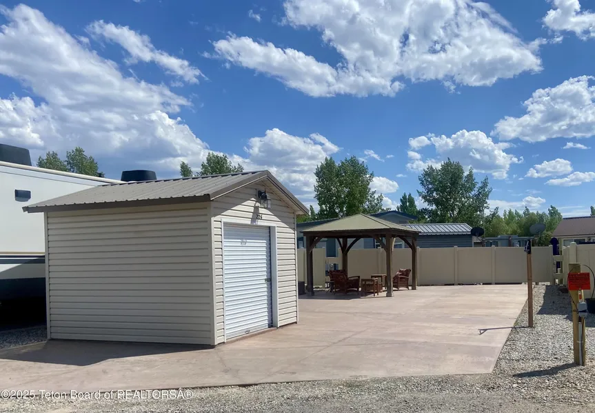 Full concrete lot with permanent gazebo to enjoy your Star Valley summer! Golf cart shed at the FRONT of the lot allows for easy access and added convenience. Shed is also equipped with electricity, full size washer and dryer included in the sale, and utility sink. All patio furniture included in the sale as well. Located in a prime position just east of the pickleball courts!