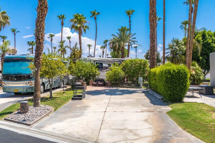 This expanded lot is perfectly positioned near the resort's entry/exit for easy access. Just a short walk from the La Palma Clubhouse, you're ideally located near top-notch facilities including tennis courts, a state-of-the-art fitness center, restaurant, convenience store and a luxurious pool and spa. This lot represents the perfect starter set for those new to resort living or seeking a hassle-free, ready-to-enjoy retreat. Outdoor Resorts Palm Springs is a Five Star RV Resort Community combining luxury with affordability. It is a guard gated resort that sits on 137 beautifully landscaped acres with 27 holes of executive golf, 10 tennis courts, 13 pickleball courts, 8 swimming pools, a fully equipped fitness center, beauty salon/barber shop, full-service restaurant, convenience store, 2 club houses, activities, special events and so much more.