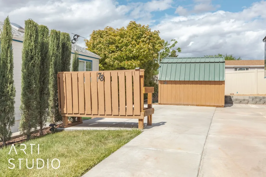 Snowbird's Paradise! This is one of the largest lots in the Cherokee Springs 55+ Community, sitting at the western edge of the community with a brick privacy wall along the border. Included shed is insulated, wired with 50 amp service, could be used for possible washer and dryer, Hot Tub, etc. Recent improvements include added concrete space to the side of the driveway and a tasteful wooden privacy fence for your hot tub or patio furniture. RV in photos NOT included in price. Buyer to verify all information. For info on Cherokee Springs HOA call Community Management Specialists at 435-229-4740