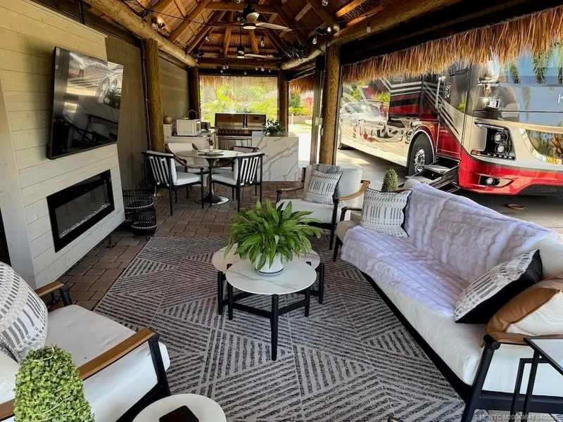 Motorcoach Resort St Lucie West, site 274 Class A Coach Lot REDUCED TO SELL... $219,000 You're invited. Take a tour, sit in the tiki and enjoy paradise for yourself. PULL-IN North Facing Site... Amazing Golf Course and Water VIEWS... ELEGANTLY Furnished Tiki with NEW Kitchen... Private and Relaxing AMBIANCE... Bonus! Watch "Live" SPACE Launches Free This spacious tiki offers the perfect blend of style, form & function. Stunning NEW KITCHEN with a QUARTZ WATERFALL ISLAND, high-end $5K NAPOLEON GRILL, refrigerator, sink & microwave. A well-placed TV and FIREPLACE wall caters to all your entertainment needs. Lounge in comfort. NEW FURNITURE adorns the tiki's living/dining area. Remote-controlled MOTORIZED ISINGLASS screens ensure year-round enjoyment. GENEROUS PARKING for your coach/cars/golf cart. Whether you're seeking a magnificent retreat, an entertainer's delight, or simply a peaceful sanctuary, this property offers it all. Upscale resort with TONS OF AMENITIES. What a steal!