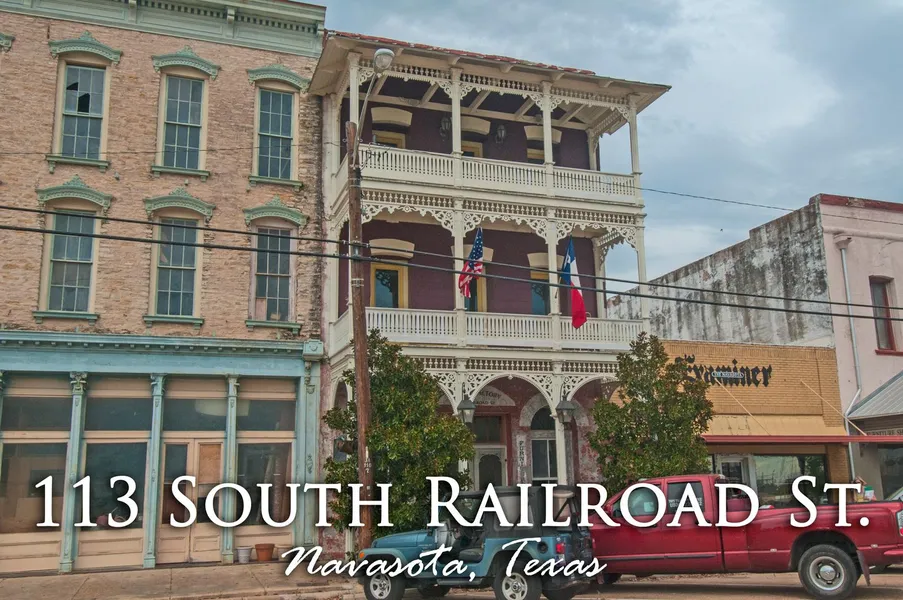 Beautiful historic commercial building located in Downtown Navasota with frontage on Railroad Street. Features +/-7,200 SF and was originally built in 1860 by R.H. Giesel for use as a restaurant and hotel. Three stories, each offering +/-2,400 SF, with attractive exterior detail including second and third floor balconies with rich ornamentation and craftsmanship. First and second floors are ideal and versatile for any type of business. Third floor has been completely restored and remodeled for use as a residence featuring three bedrooms, two baths and open living space. Fabulous island kitchen with granite countertops, Viking range and built-in refrigerator. Custom details throughout with wood floors, wood plank walls, incredible custom Pecan cabinets, beautiful custom moulding and wood work, double pane insulated windows, reclaimed wood for ceilings, claw foot tub and so much more. Situated in the heart of Navasota with easy access to Bryan/College Station, Conroe and The Woodlands.