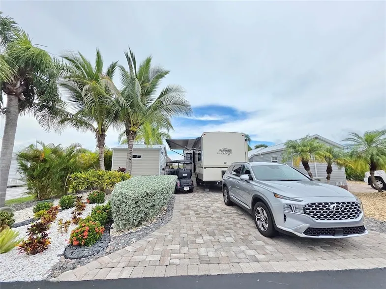 SILVER PALMS RV 5 STAR RESORT - This beautiful property is on the Preserve teeming with wildlife. It has pavers, Casita (finished and furnished) and a Tiki Hut. The Casita has a bathroom, washer dryer, refrigerator, sleeper sofa. The bathroom has a barn door and it has AC. The golf cart is included in the package. Tiki is 12 x 14 with TV and comes furnished. The Casita is is 10 x 12, 2023. This is an active community with Pool, Jacuzzi, pickle ball, Tiki Bar, Shuffleboard, and so much more. The RV Cedar Creek - 2018, can be purchased for an additional $25,000.