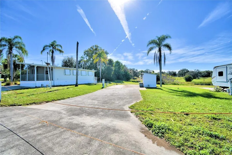 Under contract-accepting backup offers. RV OR MANUFACTURED HOME LOT IN SUN AIR NORTH COMMUNITY! The concrete slab and shed are already in place. The shed features a toilet, sink, and shower. No rear neighbors and rear pond view. Sun Air North is a peaceful manufactured home and RV community located in Haines City close to US HWY 27. No lot rent and low HOA fee of $175 annually. This golf cart friendly community has NO age restrictions. Tucked off the beat and path yet near great fishing lakes, restaurants, golf courses and more!
