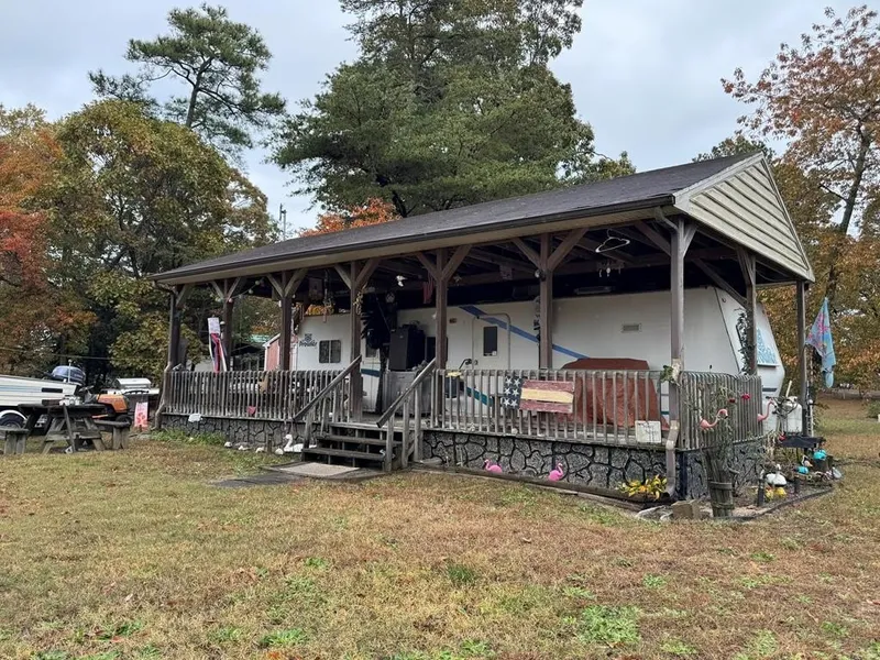 Oversized corner lot with septic, camper, deck, and camperport. Located on a quiet street in Trails End. Includes access to pool, dock, fishing pier, crabbing pier, boat ramp, boat slips, pickle ball court, clubhouse, pavilion, playground, and more.