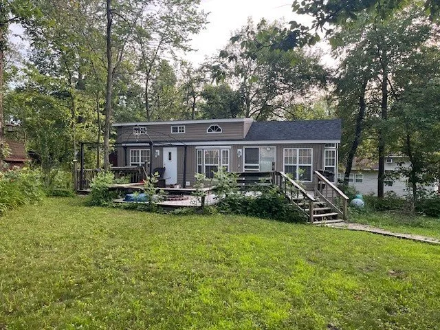 Welcome to Lot 1400 at Woodsmoke Ranch-featuring a charming and unique 2009 Breckenridge Park Model with a cozy cabin-style interior that sets it apart! This inviting property is ideally set back on the lot, offering a spacious front yard and a paved driveway for easy access and plenty of outdoor enjoyment. Inside, you'll find a comfortable main bedroom with a queen-size bed and ample built-in cabinetry and closet space. The double loft provides additional sleeping quarters, featuring two full-size beds and a twin-perfect for hosting gatherings or guests. The eat-in kitchen includes full-size appliances that stay with the home, while the living room boasts soaring ceilings, an electric fireplace, and two sleeper couches for added flexibility. Step outside to enjoy the rebuilt deck with a gazebo that stays, creating the perfect spot for relaxing or entertaining. The property is being sold fully furnished, including a 42-inch TV, making it truly move-in ready. Central A/C and heat are in excellent working condition for year-round comfort. This is a Category 5 lot with yearly dues of $2,749.12, which include water, electric, garbage, and access to all the incredible amenities Woodsmoke Ranch has to offer. Woodsmoke Ranch amenities: 2 pools, 2 stocked fishing ponds, 3 pavilions, basketball courts, sand volleyball, gaga ball, bags, 2 playgrounds, RC car racetrack, baseball field, laundromat, convenience store, cafe, horse stables (for rent), adult lounge, Mygrain Saloon, events planned year long and so much more. RV campground community, cannot be a primary residence. Gated community; showings by appointment only. No access without an appointment.