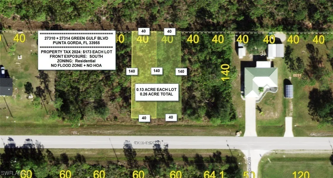 2 lots available in the very fast growing city of Punta Gorda, combine with adjacent lot: 27310 Green Gulf, that's a total of 0.25 of an acre, conveniently located close by shopping, dinning and schools. Electricity available and no HOA, unlimited building potential. Purchase now while price is low, then build your dream house later.