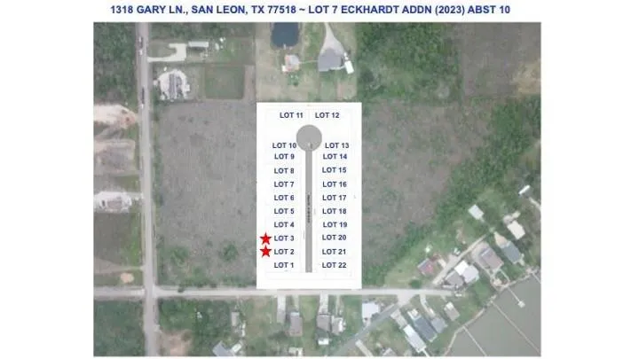 Don't miss this hidden gem in growing sunny San Leon nestled in a peaceful community located just one block away from Galveston Bay. A prime location with easy access to local amenities and major highways, this property offers the best of both worlds - tranquility and privacy combined with convenient urban living. Multiple lot listing which includes a total of 22 lots being sold. Each lot has own street address with tax identification and legal address. The culverts, sewer and water is already installed on property. The seller has sample plans available with property as a package. This location is perfect to build your dream home for weekend getaways or year-around living, or maybe a vacation rental, or income generating rental less than 10 minutes to Kemah, 30 minutes to Galveston, and 45 minutes to Downtown Houston! Buyer and Agent should verify all information. This property is a must see for anyone looking for a unique piece of real estate. Come view your new homesite today!