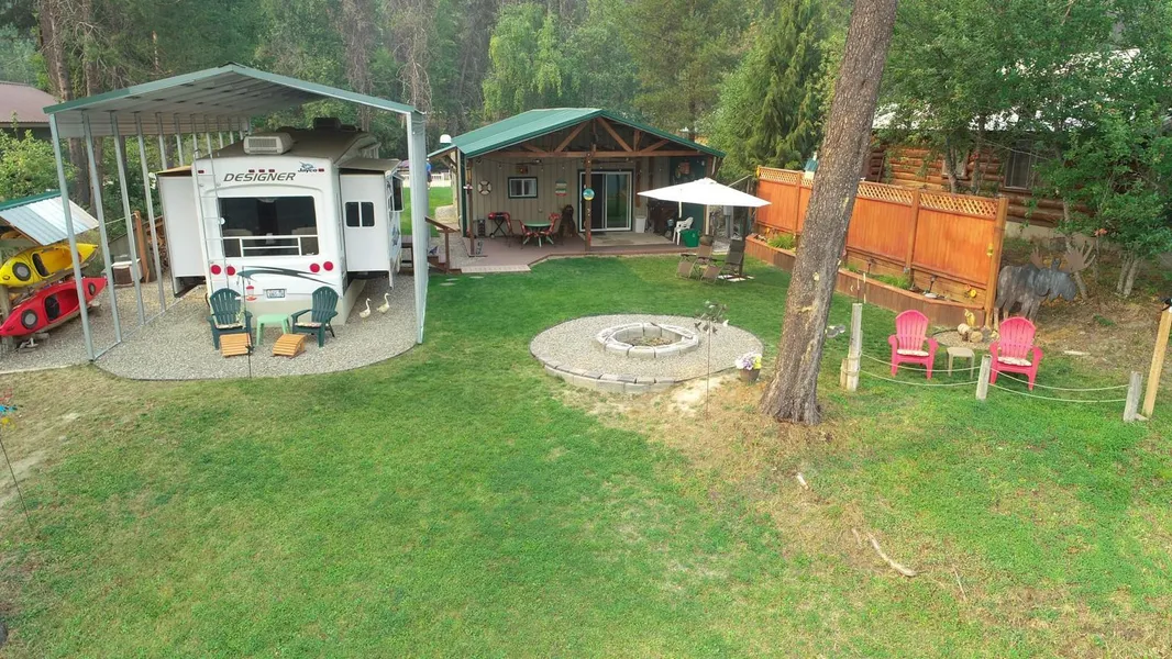Look no further! This is it. Recreation, VRBO or year round you decide. Wonderful riverfront property-1 car gar 24x30 w/attic-1 bd/1ba ''cottage'' in back w/covered patio- with kitchen -w/d, frig incl-NO heat/cooking source-also included is a '07 5th wheel-has many upgrades-ramp & docks incl-seller has completely remodeled cottage-lawn area w/firepit & planter boxes-lawn in front and back-kayak & wood rack stay & SO MUCH MORE! septic installed-water is PUD, internet at road. Don't miss this one.