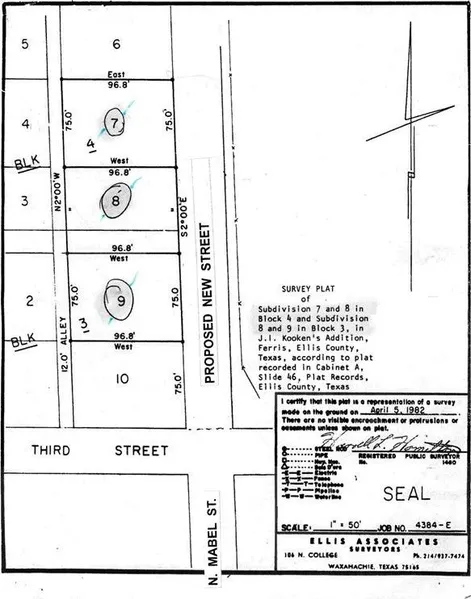 'PAPER' SINGLE-FAMILY LOT, LOT IS 75 X 97, NO UTILITIES, NO ROAD, IN FERRIS CITY LIMITS, WALK TO I-45, READY FOR DEVELOPMENT, BUT NOT REQUIRED, IF BUYER WISHES TO DEVELOP, HE IS ENCOURAGED TO APPLY FOR PRE-APPLICATION CONFERENCE WITH ALL CITY OFFICIALS PRESENT... TALK TO NICK SUMMERLIN WITH CITY OF FERRIS, FOR MORE DETAILS, SEE 'ZONING DESCRIPTION' IN THIS LISTING, BUY ALL THREE LOTS 7,8 AND 9 FOR SEVENTY-FIVE THOUSAND, SELLER-BUILDER ROBBIE HALE HAS MORE DETAILS.