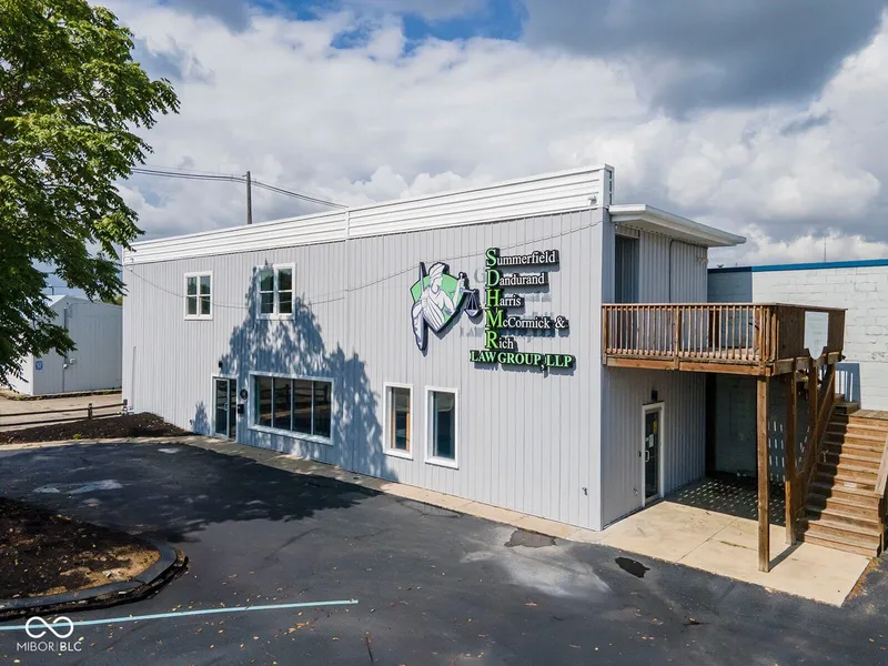 Nestled in the heart of downtown Anderson, just steps from the Madison County Courthouse and within view, this fully renovated 2,700 sq ft commercial property offers a rare blend of historic charm and modern sophistication. The fully renovated space exudes a rustic urban industrial aesthetic with exposed brick walls and hardwood floors, complemented by recent upgrades including a new rubber roof, new HVAC, and a freshly asphalted large parking lot. Inside, a spacious lobby welcomes clients, while room for 15+ associates, ample storage, a full kitchen, and three restrooms-including a full bath with shower-ensure functionality and comfort. Fully furnished and move-in ready, this turnkey property, currently thriving as a law office, is ideal for businesses seeking a prestigious address with unmatched visibility in downtown Anderson.