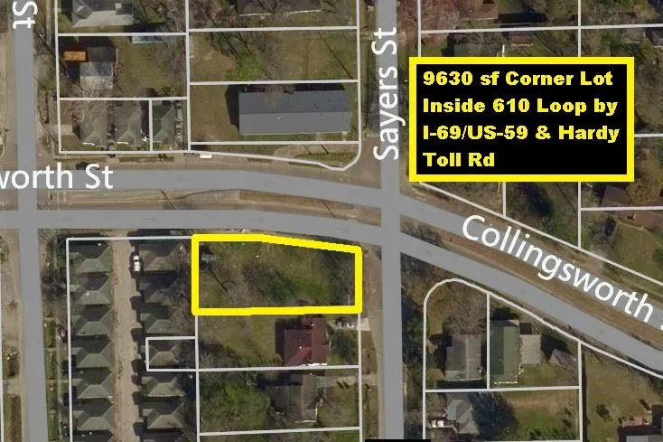 New Price! 9630 sf Corner Lot Inside 610 Loop by I-69/US-59 & Hardy Toll Rd. ~200 ft Road Frontage. Partially Fenced & Cleared w/Nice Shade Trees. Day Care & Bus Stop Across the Street on Corner. Tuffly Park 2 Blocks Away! Elementary & Middle Schools 10 Blocks Away. Minutes to Downtown Houston, 1-10/East Fwy, 1-45/North Fwy. Texas Medical Center, 3 Universities, Minute Maid Park, Museum District & Zoo within 10 miles. 2 Major Airports, Port of Houston, NRG Stadium & Sam Houston Tollway within 15 miles.