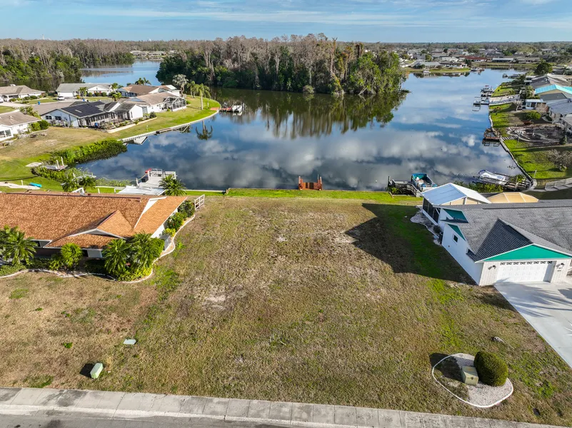 BEAUTIFUL VACANT LOT ON STUNNING NORTH LAKE, WITH 80 FT WATER FRONTAGE! Here's your rare opportunity to build your dream home on this amazing 80 x 120 WATER FRONT lot where you can enjoy the "lake life" within the premier 55+ community of Sun City Center, FL. This lovely property is nestled in a quiet & peaceful neighborhood with a MINIMAL ANNUAL HOA. It has an UPDATED SEAWALL and an EXISTING BOAT DOCK. You'll love cruising the four different islands within this picturesque 54-acre lake, the largest in the community. You'll also enjoy the abundance of amenities in this active & friendly community, such as shopping, restaurants, banking, medical facilities, numerous social clubs, a library, golf, pickleball/tennis, indoor/outdoor pools, and so much more, all accessible by golf cart. Sun City Center is also conveniently located near major highways, airports, Sarasota, Tampa, award-winning beaches, and Disney. So, come and view this beauty today and discover why you'll want to call it yours!