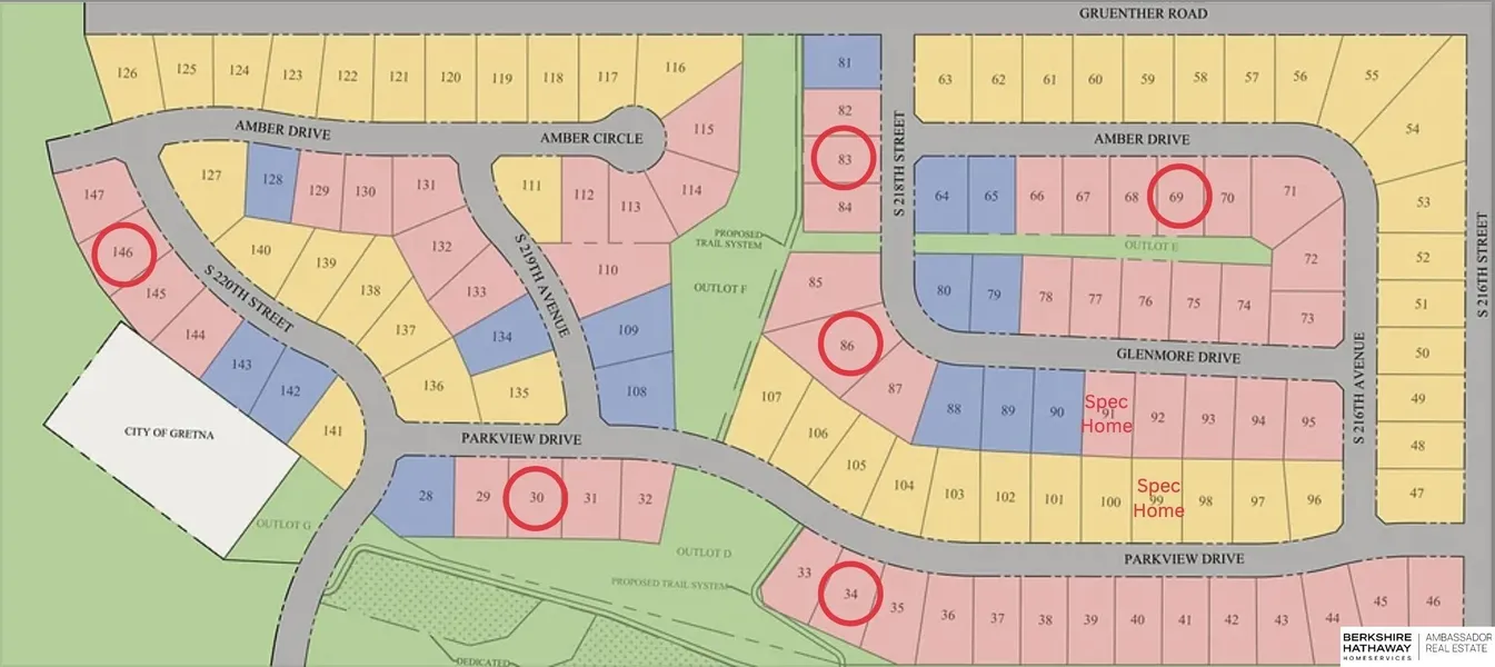 Rachel Skradski Luhrs, M: 402-650-4727, , - Lot 146 Gruenther Ridge is a walkout lot with no backyard neighbors! This lot is builder attached (Colony Custom Homes) or can be non builder attached.. Gruenther Ridge, off 216th and Gruenther Road in Gretna is a brand new subdivision featuring nearly 17 acres of green space along with a trail system and areas for future parks. Easy access to Highway 6 and 370. Gretna school district. Colony Custom homes is a custom home building company serving the Omaha Metro Area. Call today for more information!