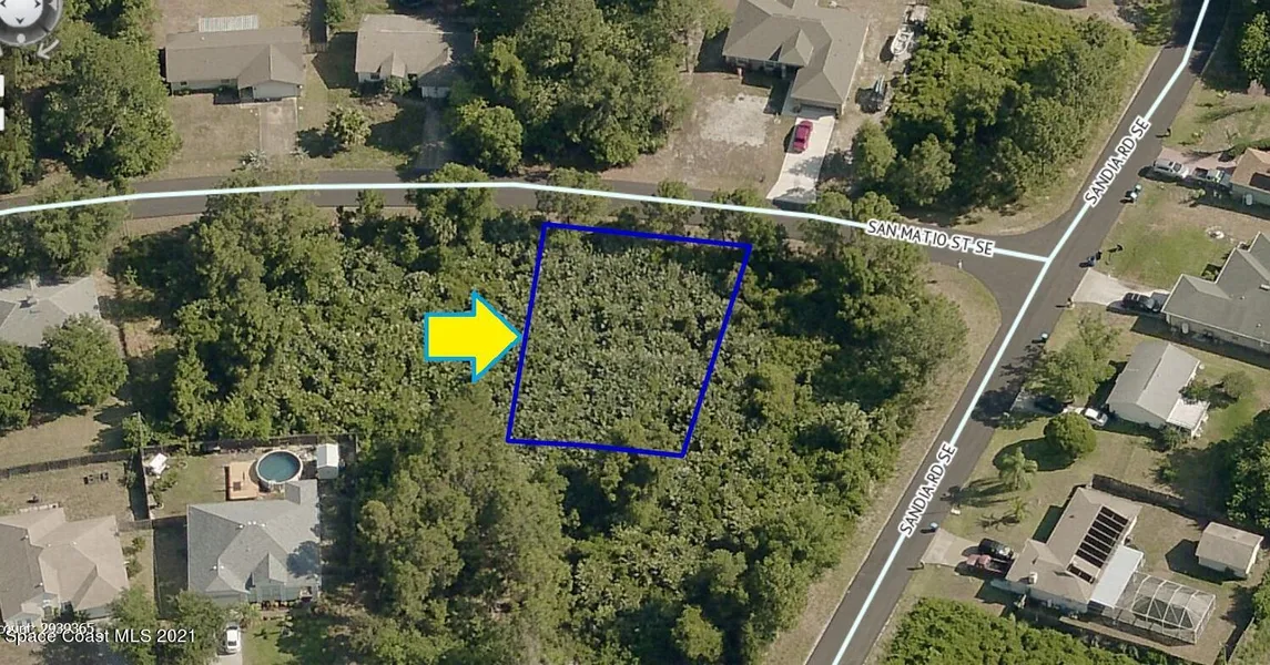 0.23 acre buildable residential lot available in Port Malabar Unit 17 of Palm Bay. Located in the southeast section, this lot is just 2.0 miles - 6 minutes to the Publix Supermarket, 2.4 miles - 5 minutes to Columbia Elementary School, 11.9 miles - 28 minutes to Melbourne Airport, and 16.6 miles - 28 minutes to the beaches of Indialantic. From exit #173 of I-95 go west on Malabar Road for .2 miles, left on San Filippo Drive for 3.9 miles, right on Sandusky Street for .4 miles, right on Sandia Road for .1 mile, and left on San Matio Street. The lot will be on your left.