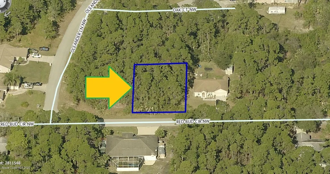 0.23 acre build-able single family residential lot [Rs2 Zoning] available for sale in Port Malabar Unit #41 of Palm Bay. Nicely located in the NW section near the St. John's Heritage Parkway, this lot I s just 2.5 miles -7 minutes- to Heritage High School, 3.2 miles -8 minutes- to Jupiter Elementary School, 5.9 miles -13 minutes- to the Walmart Supercenter and the I-95 Ramp, and just 17.5 miles -34 minutes- to the beaches in Indialantic. From Exit #180 of I-95 go west for 0.5 miles. turn left onto St. John's Heritage Parkway and proceed south for 6.1 miles. Turn left on Malabar Road. Proceed 0.9 miles and turn left on Wisteria Avenue, left on Holbrook Road NW, left on Krassner Drive, right on Boxthorn Avenue NW and right onto red Bud Circle. The lot will be on your left.