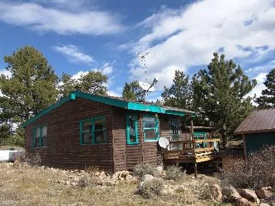 : Charming Mountain home or cabin. Pine paneling feels so cozy and warm. Fireplace, Southern mountain views beyond the sand green golf course. Easy access and a few large Ponderosa. Roomy 2 car garage and a storage shed. Check out this great year round property in Red Feather Lakes Village.