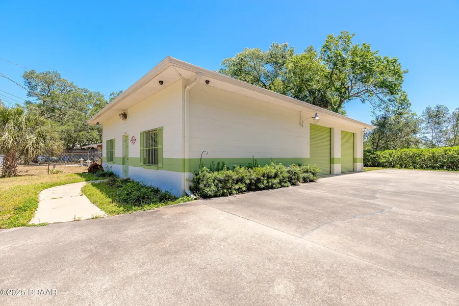 This remarkable commercial property in Ormond Beach, Florida, offers an exceptional opportunity for business owners and investors alike. Situated on a fully fenced 1/4-acre corner lot, the building features nearly 1,800 square feet of versatile space, including a welcoming lobby, two spacious offices, two restrooms, and a large warehouse (1,310 sqft) area with dual 10-foot roll-up doors. The property also boasts ample parking, a secure gated entry, and is zoned B-4, supporting a wide range of potential uses such as business or professional offices, business services, retail sales and services, and mixed-use development. Its highly visible location and flexible layout make it ideal for a variety of commercial ventures.