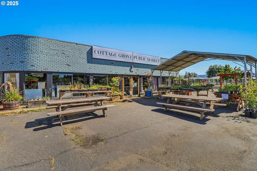Exceptional corner location at Main St & HWY 99 in the heart of downtown. This fully renovated 2020 building is home to the vibrant Cottage Grove Public Market-an established year-round hub featuring food, beverages, artisan goods, live music, and more. Anchored by popular vendors like Coast Fork Farm Stand, Saginaw Vineyards, Cone Heads Ice Cream, and beloved food trucks Cocina Mi Pueblo and Phat Turk, with more local businesses joining soon. Sale includes 3 tax lots. Full remodel cost breakdown available upon request. A rare opportunity to own a cornerstone of Cottage Grove's thriving small business scene!