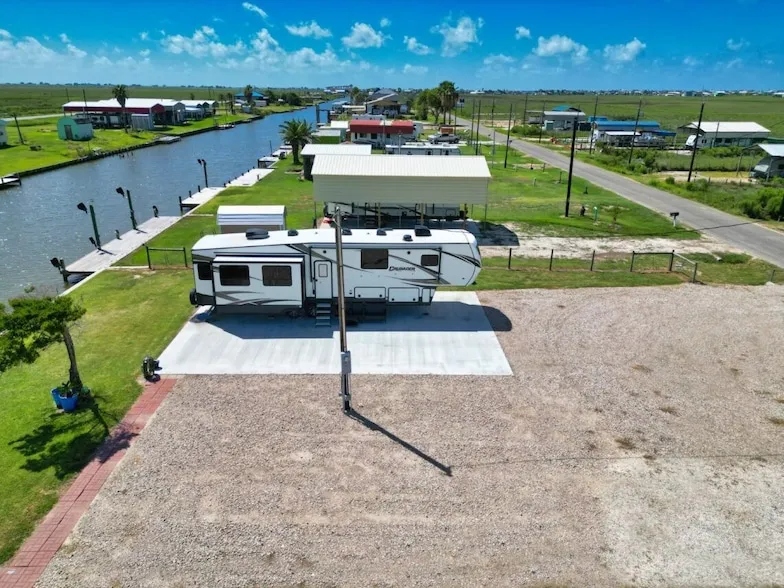 $25,000 BELOW ASSESSED TAX VALUE on canal with Vinyl Bulkhead. Experience and live the best of Coastal living with this 2 Lot property that offers a concrete pad and all utilities already in place. Enjoy having your own Fenced, private getaway with access to fishing, crabbing and entertaining family and friends at your own very getaway spot. You will be moments away from Matagorda Bay, ICW, Sargent Beach, Several bait camps, food trucks and Restaurants. The RV 5th Wheel that is optional is a 2021 Crusader that sleeps 6 comfortably. It is very well maintained, vinyl flooring, carpet, kitchen island, all stainless-steel appliances, dining table with open concept into the living room that has Recliner Couch and fireplace for those chilly nights. This Lot has it all and could be yours to enjoy!