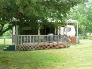 Getaway place in peace & quiet, 3 lots are shaded & level, rural water & electric on site, included w/lots is 32'travel trailer sitting under a metal roof w/attached 12x20 covered deck, behind is chain linked fenced back yard, only short distance to swimming,fishing, golf, tennis, pool, & clubhouse. MLS# 1837467