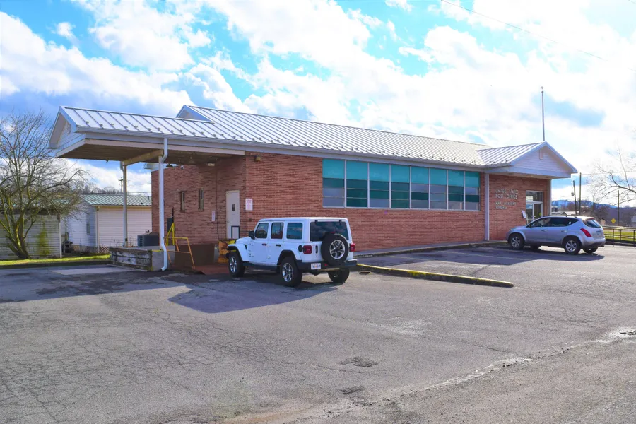 This 0.304 acre commercial lot for sale is located in the Max Meadows area of Wythe County VA. The property includes a 2,034 square foot building that is currently leased by the US Postal Service for $800/month. This brick building has 2.5 bathrooms and a heat pump!