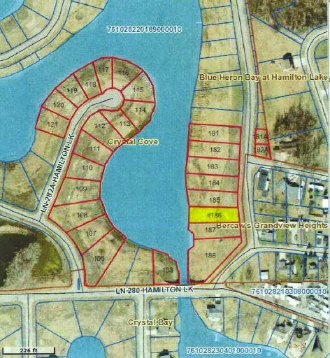Beautiful waterfront lot on Crystal Cove, which is part of Hamilton Lake, an all sports lake. This lake development has sand beaches, great views, and city utilities available.