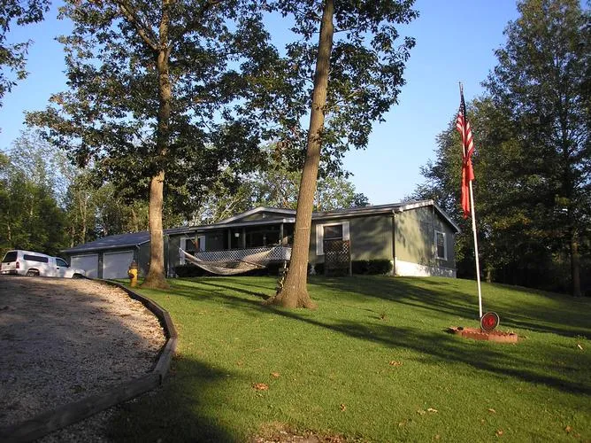 Three bedrom 2 bath home on beautiful private Lake Viking. Great palce to retire with over 700 acres of water with good fishing and boating. Lake has marina club house private security and many amenities. The home has new tile flooring paint and renovated in 08 and has a 2 car detached garage with concrete floor. There is alarge deck looking at a treed yard and wildlife and walk to the lake or drive down to the marina and put you boat in. This home sits in the timber with oak trees throughout the yard. The home is very neat and clean with 2 decks oversized garage with work shop and lake living. Enjoy the lake community living here or just use it for a great weekend retreat...