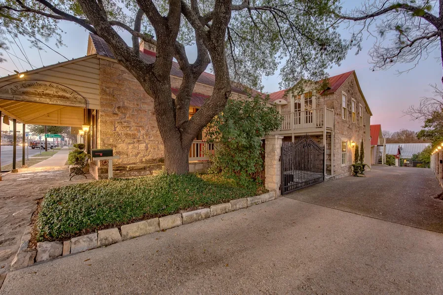 Stunning Pioneer stone building on bustling Main St. in Fredericksburg, Tx is now being offered for sale. The 3100+ sq ft building has been painstakingly restored with new electrical, plumbing, windows, custom "KINGWOOD" cabinetry, full kitchen with WOLF appliances (most have never been used), butler's pantry with 2nd refrigerator, double ovens, ice maker, etc...gorgeous fireplace, long leaf pine staircases, 2 full baths upstairs and 1 half bath downstairs, room with custom cabinetry & solid Walnut doors/trim is currently used as a gun showroom, large back area with 2 story garage/storage that has been finished out for entertaining.