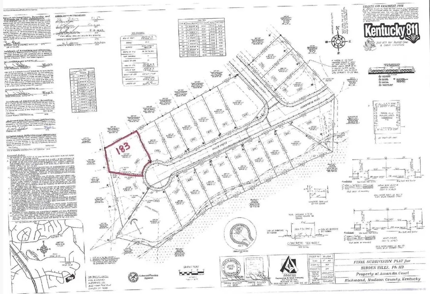 Lot #183- Build your dream home on this beautiful lot in the heart of Madison County! Platted lot ready to build on! This lot is perfect for building a custom home on a crawl space. Several lots listed, call for a private tour of multiple building site options in the Hidden Hills Subdivision! All infrastructure is completed. Plat and restrictions are provided. Developer to approve all house plans prior to building. This lot is part of a larger parcel that can be sold all together or individually.