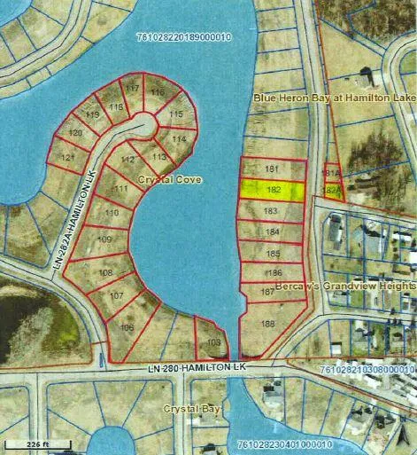 Beautiful waterfront lot on Crystal Cove, which is part of Hamilton Lake, an all sports lake. This lake development has sand beaches, great views, and city utilities available.