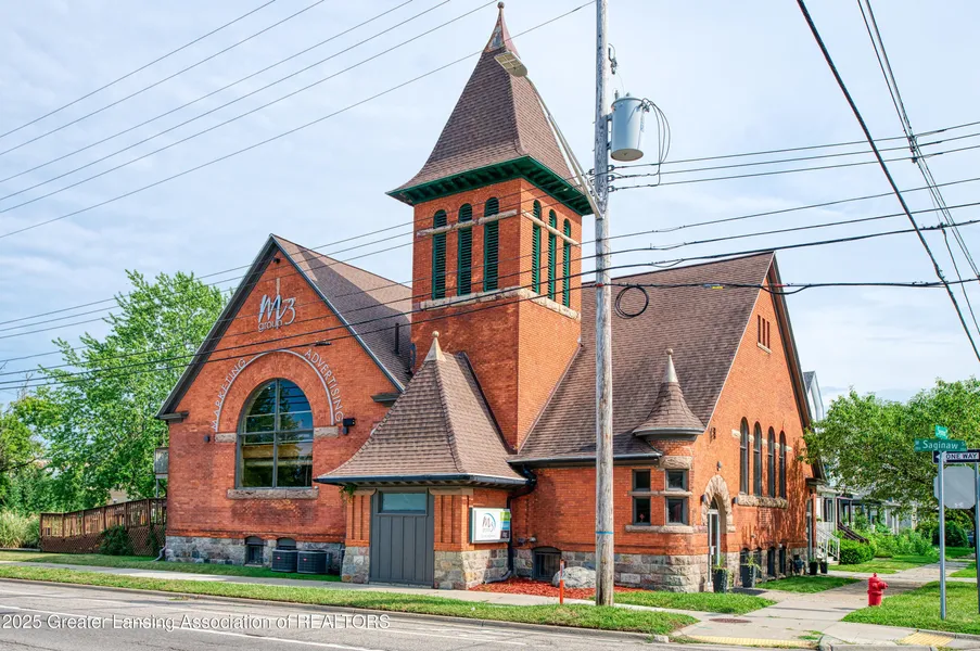 Own a Piece of Lansing History: Stunning Creative Space in the Heart of Downtown Imagine your team thriving in a space that inspires innovation and collaboration. This isn't just a building; it's a reimagined landmark. Originally a beautiful church built in 1892, this property has been meticulously transformed into a one-of-a-kind creative haven, seamlessly blending historic charm with modern functionality. Located in the heart of downtown Lansing, steps away from city and state government offices and Lansing Community College, this unique space offers unparalleled access and visibility. Key Features: Awe-Inspiring Architecture: Experience the grandeur of a historic church with cathedral ceilings, reimagined for the modern workplace. The large windows provide the perfect natural lighting. Expansive Layout: Three levels including a mezzanine provide ample space for your growing business. The open floor plans foster collaboration and creativity. Dedicated Meeting Spaces: Four well-appointed conference rooms ensure seamless meetings and presentations. The main conference room has a garage door that lifts offering an opportunity to host small to medium sized events on the main level. Private Offices: Nine individual offices offer privacy and focus for your team members. Full Kitchen: A fully equipped kitchen provides a convenient space for employees to recharge and connect. Convenient Amenities: Six restrooms and three storage closets offer added convenience and functionality. Accessibility: Ramps make the first floor and restrooms of both buildings accessible. More Than Just a Building This property is more than just bricks and mortar; it's an opportunity to own a piece of Lansing's history and create a vibrant workspace that reflects your company's unique identity. The juxtaposition of traditional architecture and modern design provides a truly inspiring environment that will attract top talent and impress clients. This exceptional property was renovated less than 10 years ago with new electrical, plumbing and HVAC. The property comes with a quaint second, smaller 2,200 sq ft house that was once a rectory building. It is zoned commercial and can be used as a rental property or additional space for the primary occupants. Parking is available onsite offering 20 spots. The buildings are also walkable to downtown restaurants, shops and local parks. It's a must see.